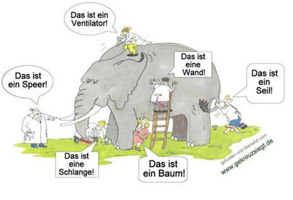 Eine passende Illustration bietet die Parabel der blinden Gelehrten: